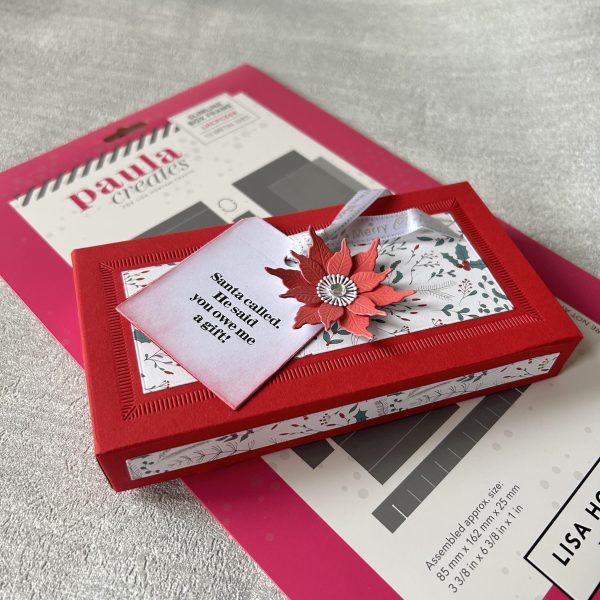 The box assembled measures approximately 85 mm x 163 mm x 25 mm, or 3 3/8 x 6 3/8 x 1 in.