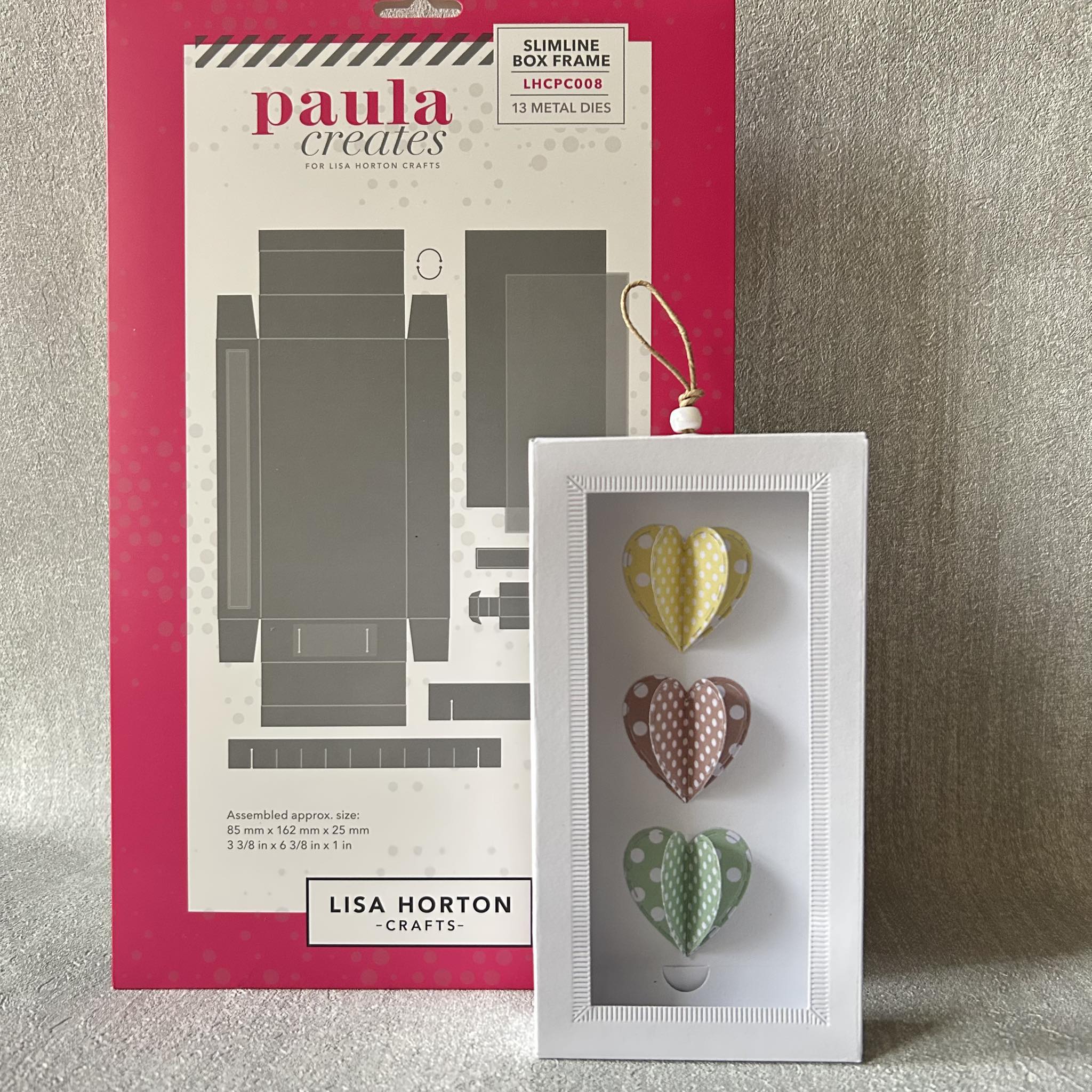 The Slimline Box Frame is a stand-alone die set that allows you to create a box and a frame without glue.